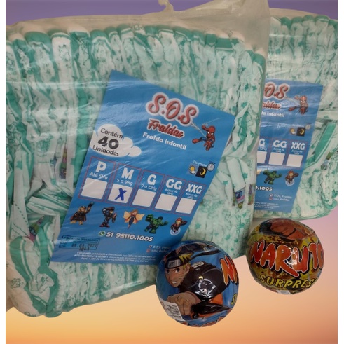 KIT 2 Pacotões Fraldas Infantil (Qualquer Tamanho) P/M/G/GG/XXG + Bola Surpresa Naruto