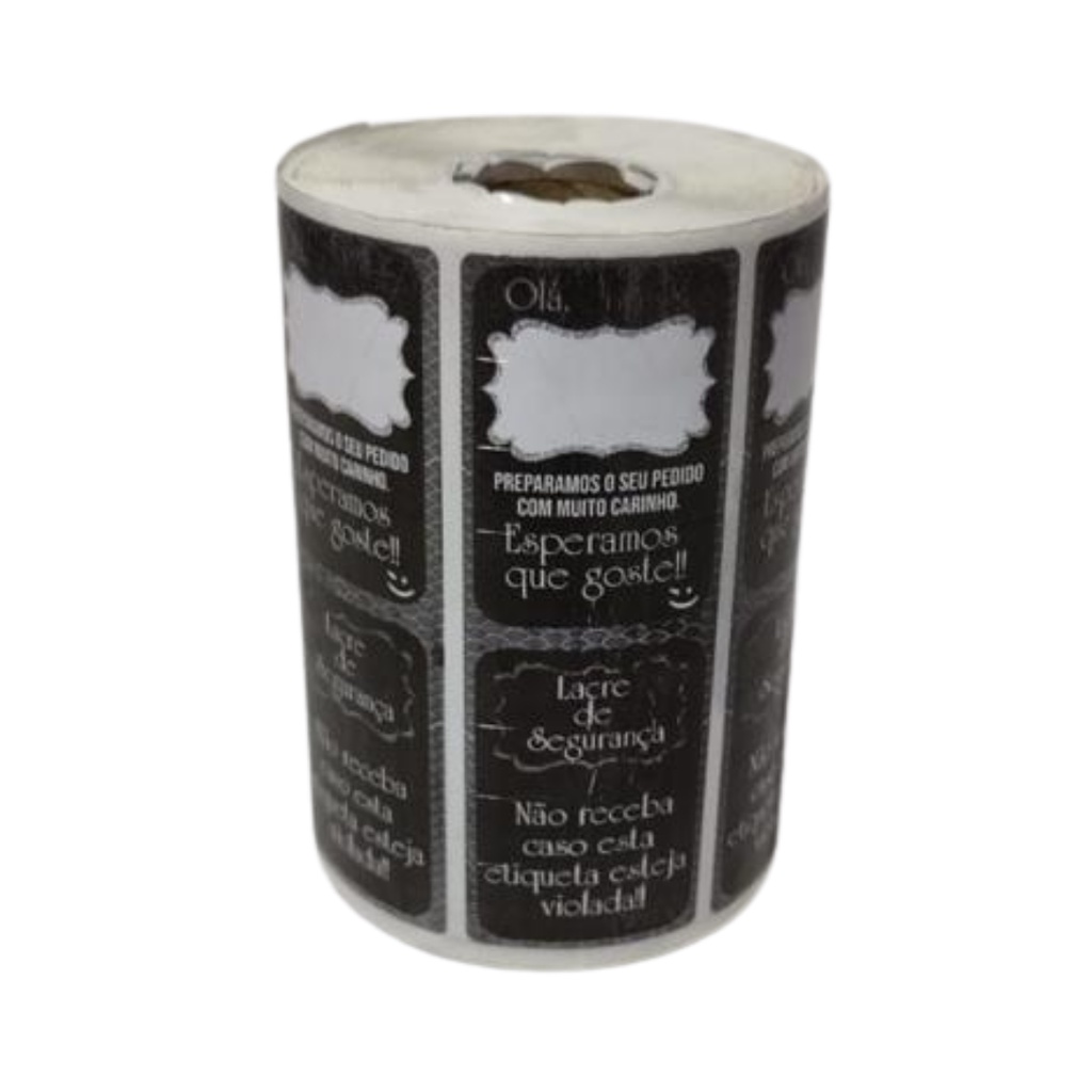 1.000 Lacre de Segurança Para Embalagem Delivery Sacola Adesivo 3x7cm - Cad. Preto