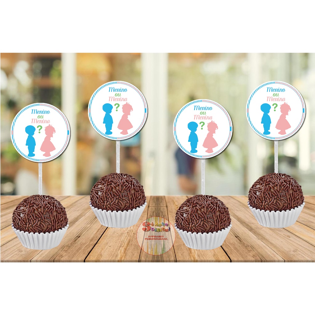 50 Toppers de Docinhos e Cupcake Personalizado tema (Chá revelação) decoração de festa