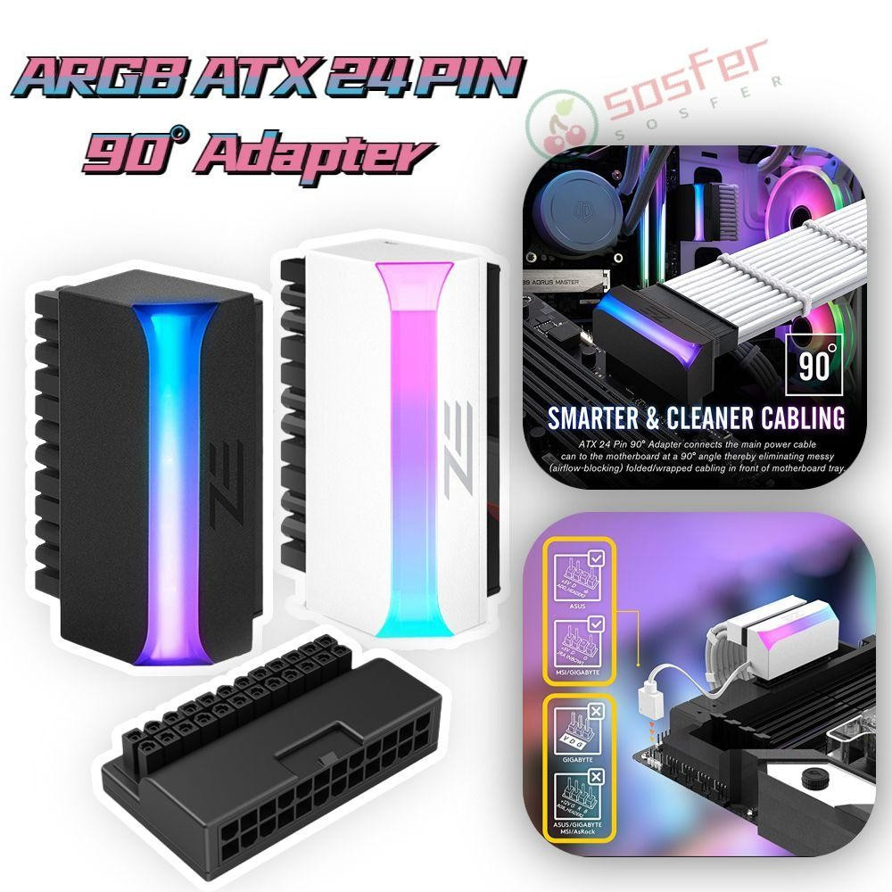SOSFER ATX 24 Pinos A 90 Graus , Adaptador De Tomada De Alimentação ARGB Da Placa Principal , Cabo-Mãe Do Computador DIY