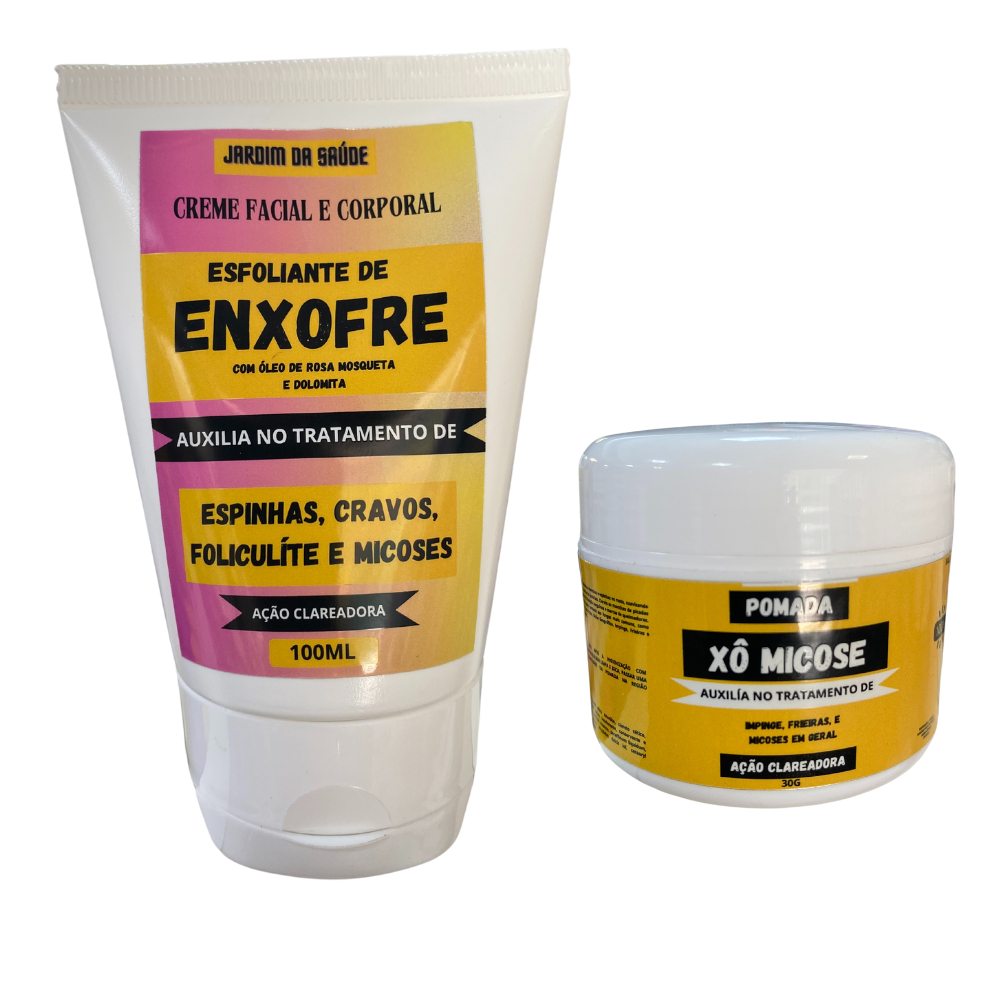 kit Creme de Enxofre facial e corporal + Pomada Xô Micose trata impinge, Miocoses de pele, Acne, Manchas, foliculites