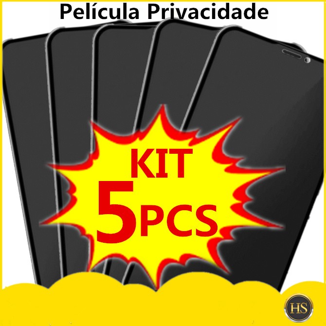 KIT Com 5 Película Privacidade iPhone Spy 6, 6s, 6 Plus, 7/8, 7/8 Plus, X/XS, XR, 11 Pro Max, 12.13