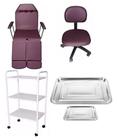 Kit Podologia Vinho Maca Cadeira Carrinho Mocho