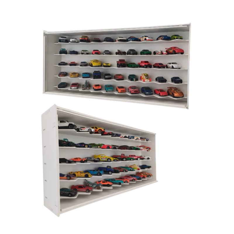Expositor carrinhos hotwheels em 45º p/50 miniaturas com porta de vidro ou acrilico