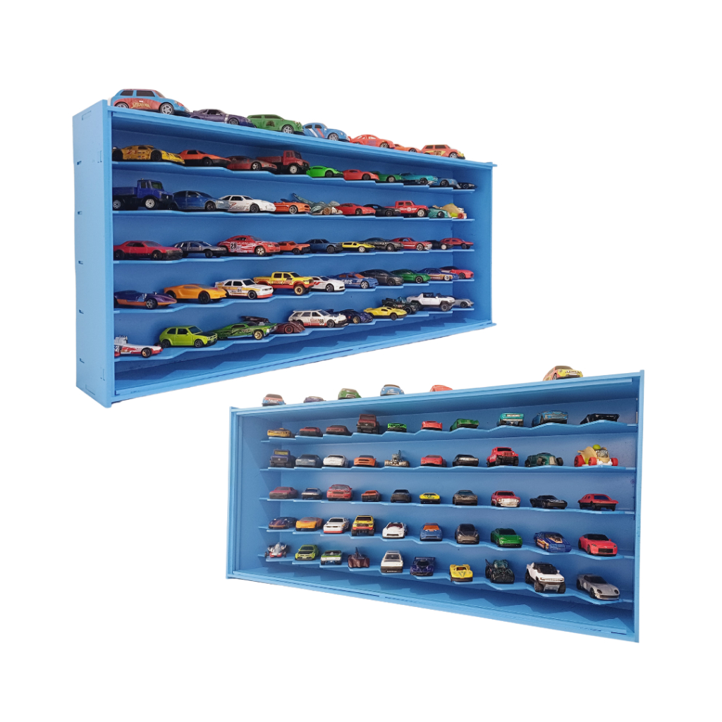 Expositor de carrinhos hotwheels em 45º para 50 Carrinhos AZUL