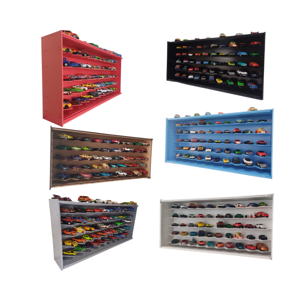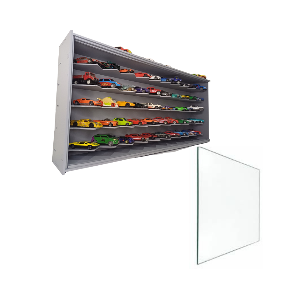 Expositor de carrinhos hotwheels em 45º+Porta VIDRO P/carrinhos