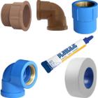 Kit 18 Peças Conexão Pvc Soldável Marrom Azul Bucha Latão