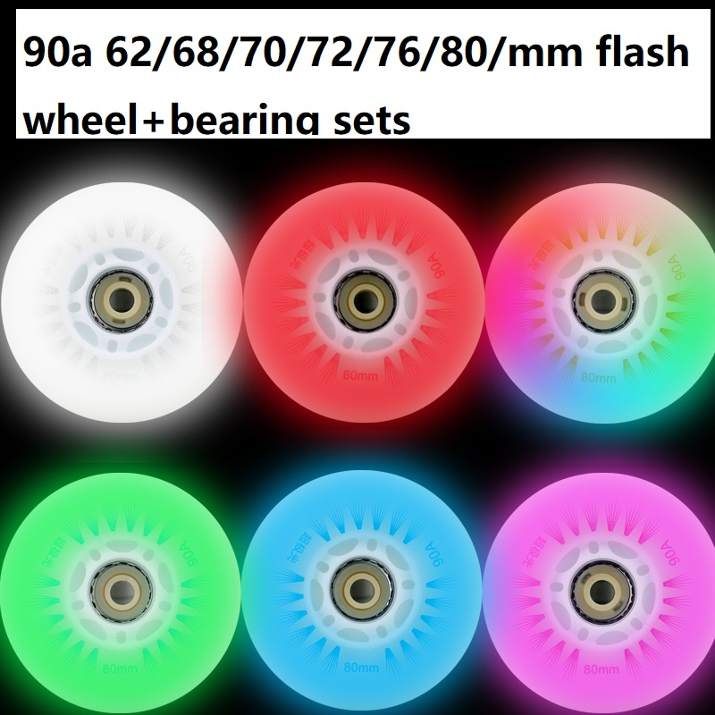 8 pcs Rodas Grandes Profissionais De Alta Velocidade Com Rolamentos 62/68/70/72/76/80mm De Patins Em Linha 90a street urban kids Figura Plana fsk inline accessori