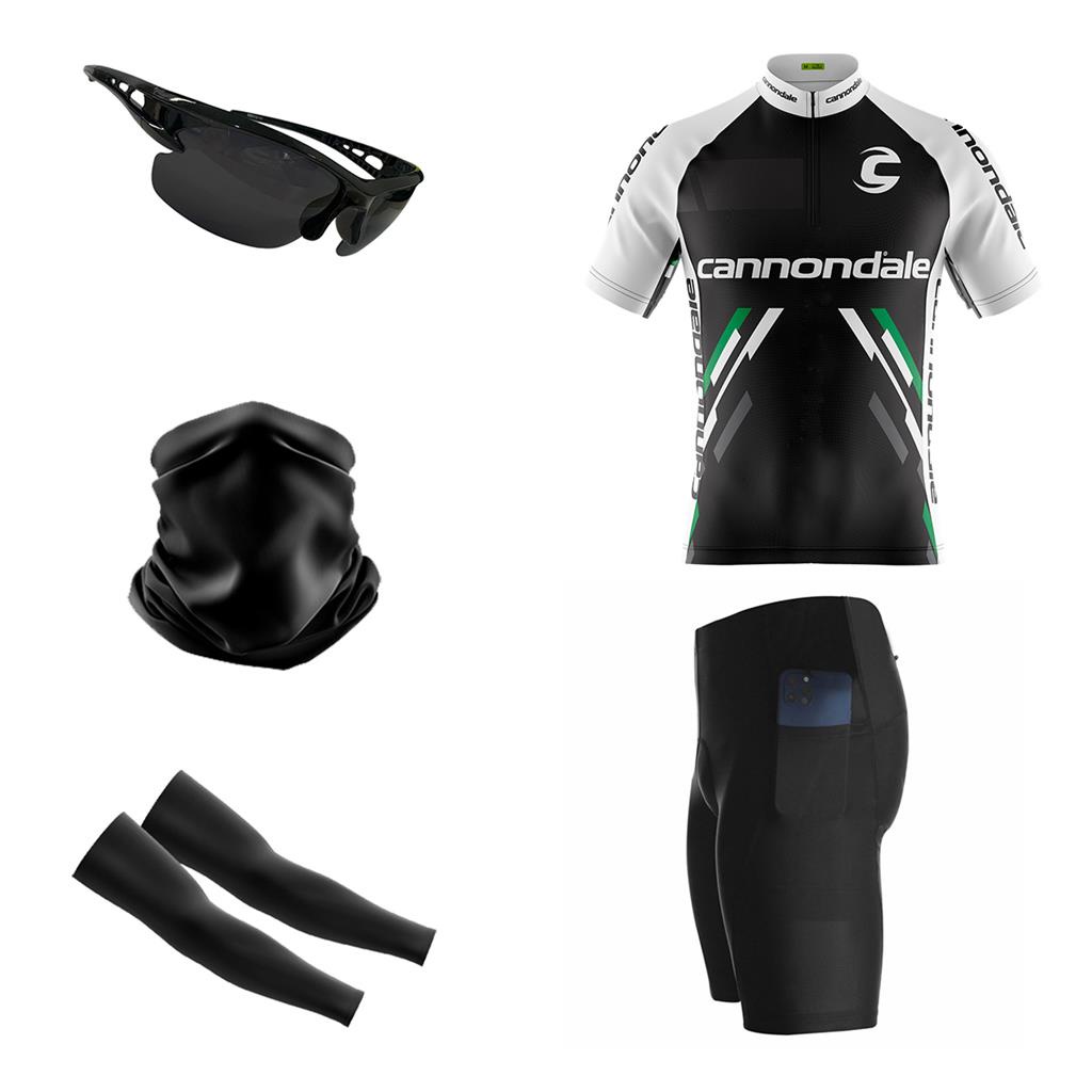 Kit Ciclismo Bike Team Tour com Protecao UV50+ Camisa Bermuda Bandana Manguito Oculos