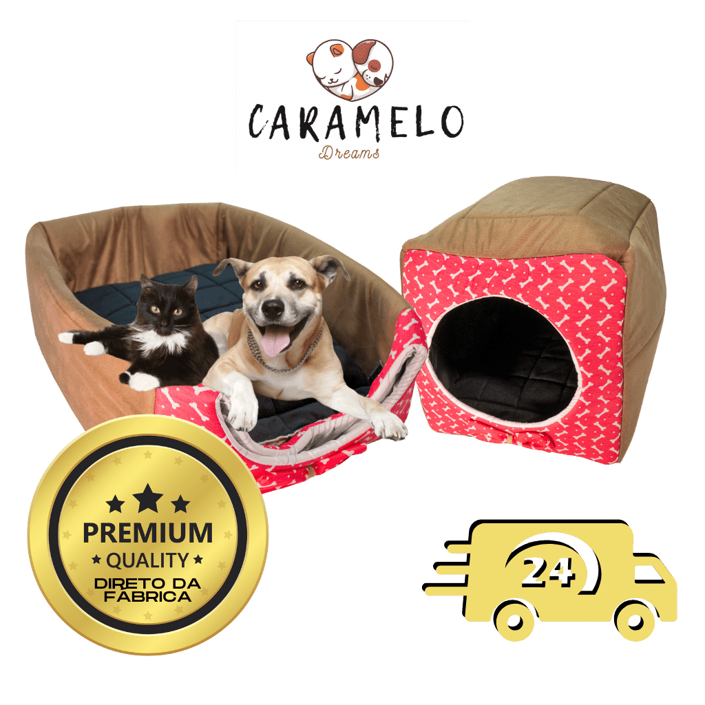 Casinha Pet 3 em 1 Suede - Tamanho M - Colchonete Cama Caminha para Gato e Cachorro Osso Ossinho - Media
