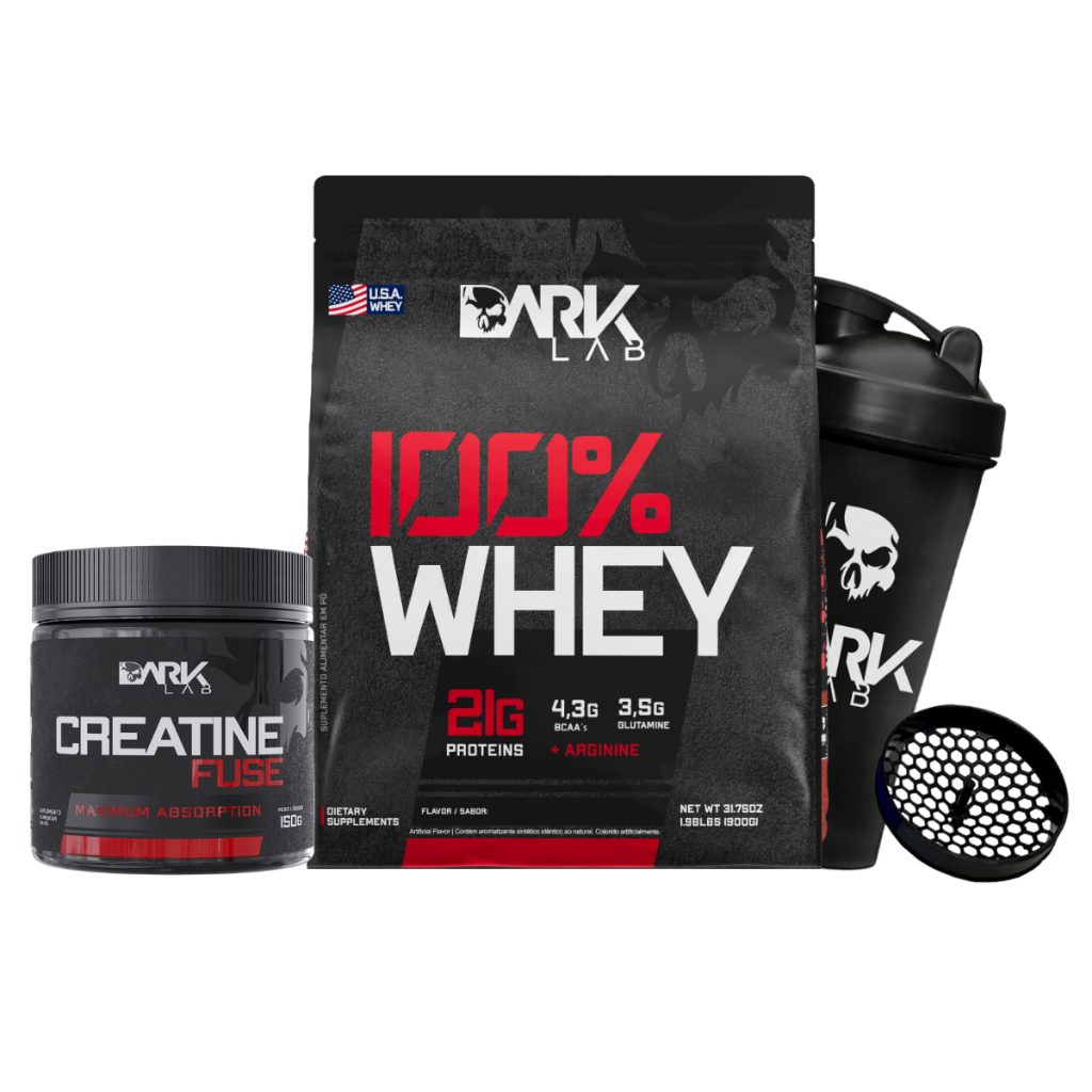 Kit 100% Whey Protein Concentrado Refil 900g + Creatina Monohidratada 150g Creatine Fuse + Coqueteleira 700ml - Dark Lab