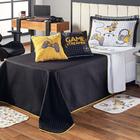 Kit Cama Colcha Infantil Cobre Leito Game Streamer Preto Dupla Face c/ Almofadas Solteiro 05 Peças - DOURADOS ENXOVAIS