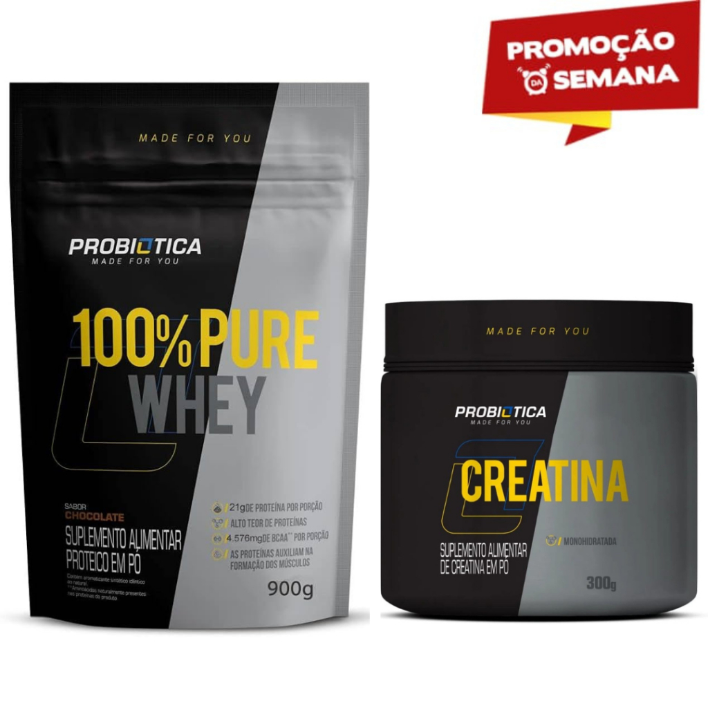 Kit Whey 100% Pure Refil 900g + Creatina Pura 100g - Probiotica