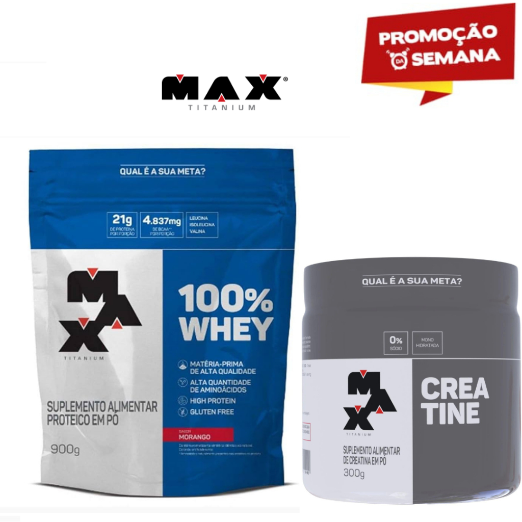 Kit Whey Protein 100% pure Max Titanium 900g + Creatina manohidratada Pura Max Titanium 300g