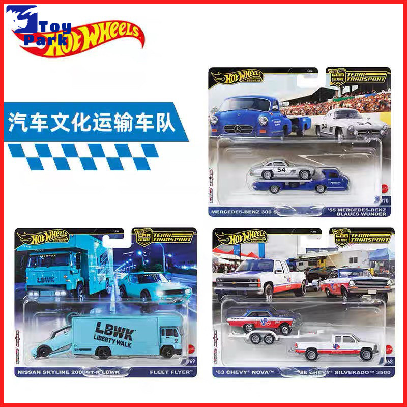 Carro Hot Wheels Cultura Transporte Frota Mercedes-Benz 300 Nissan Skyline Base de Ferro Pneu de Borracha FLF56 Liga