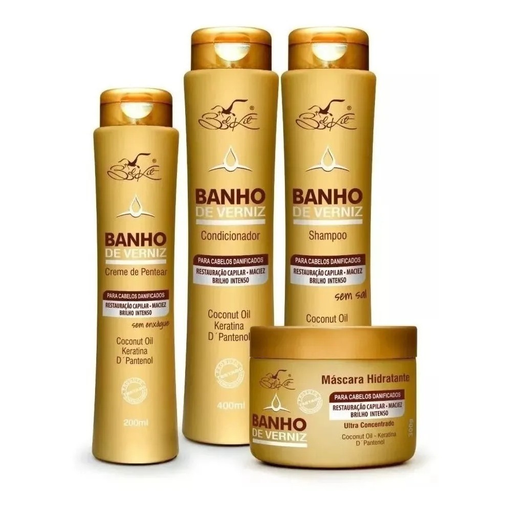KIT Banho De Verniz BELKIT 4 Itens: Shampoo + Condic. + Leave + Máscara.