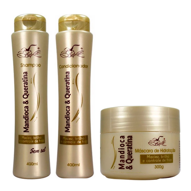 Kit de Tratamento Capilar Mandioca e Queratina Belkit 3 Itens