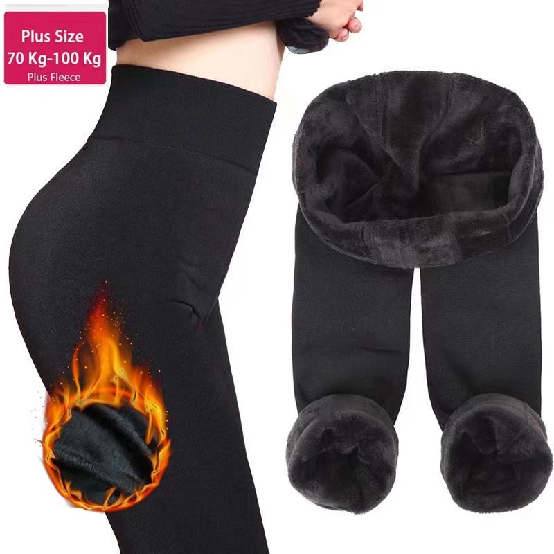 200g De Cintura Alta Leggings De Flanela Térmica Meia-Calça Adulto Um Tamanho/Preto Com Meias/Esportivas