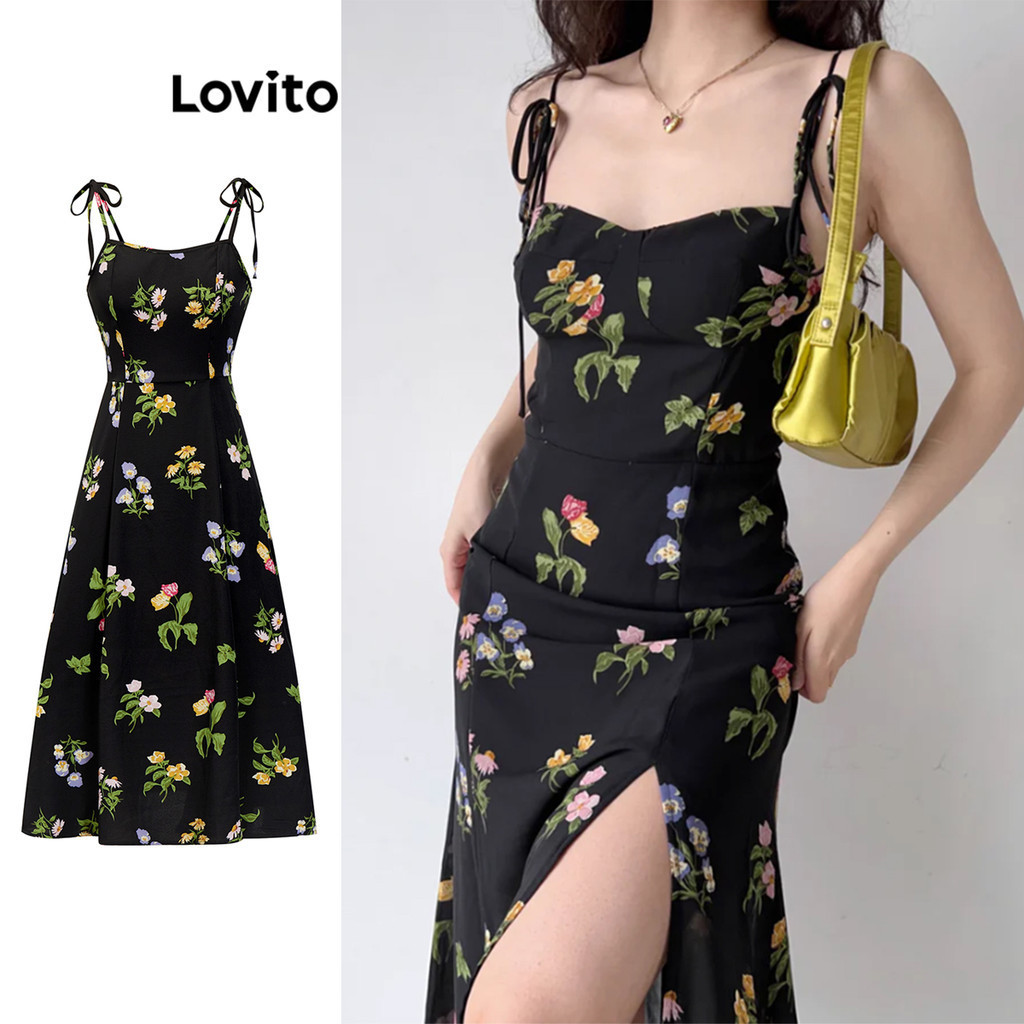 Lovito Vestido casual floral drapeado com frente dividida para mulheres L85AD181