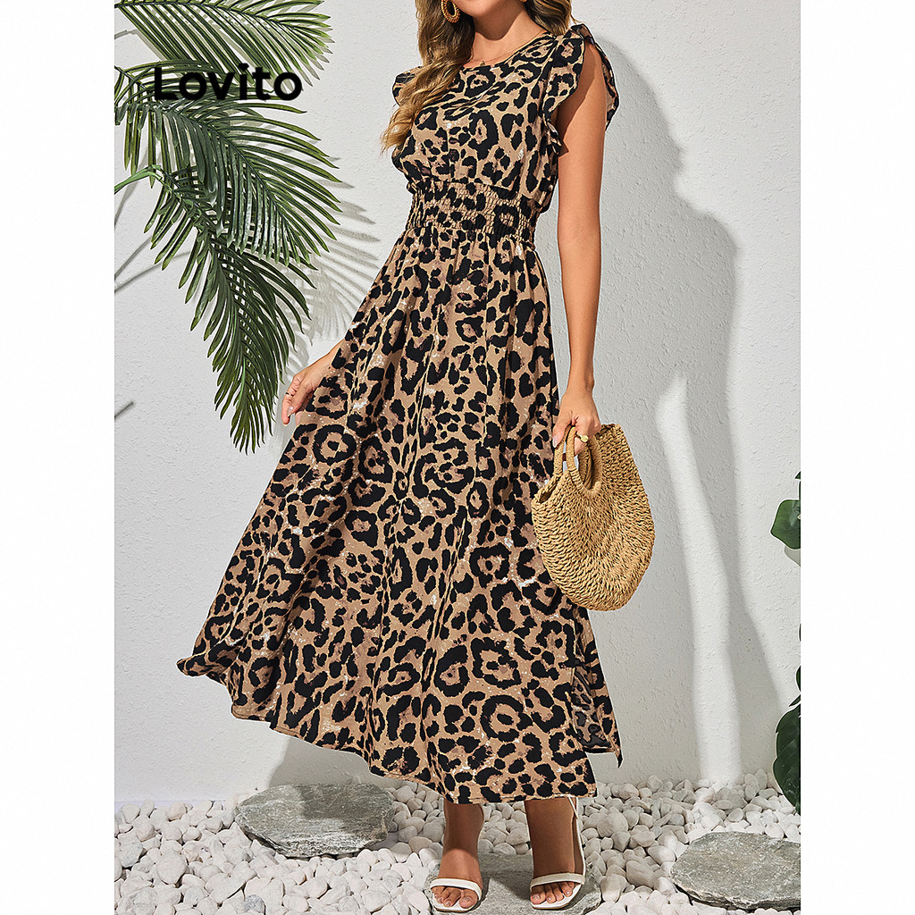 Lovito Vestido casual com estampa de leopardo na frente dividida para mulheres LBL16415