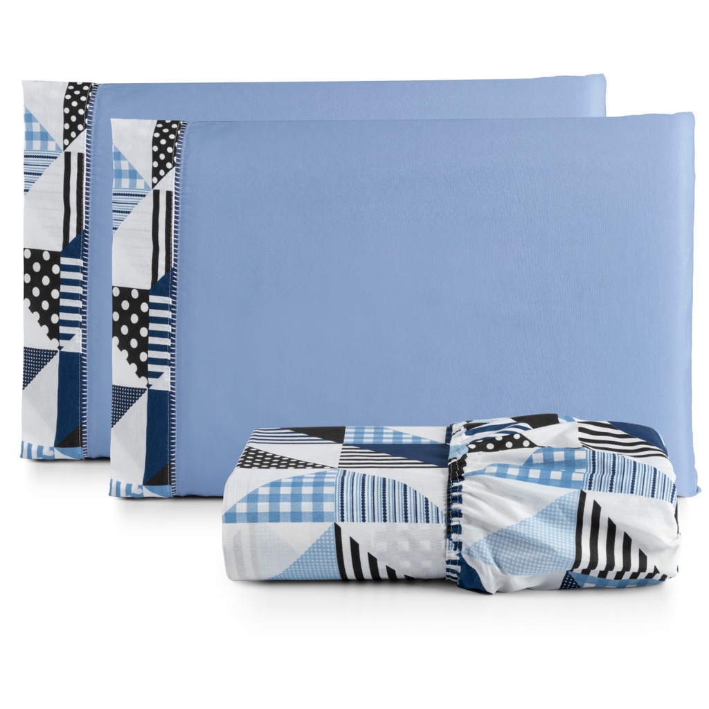 Jogo de Lençol 3 pçs Ponto Palito Queen Percal 200 Fios 100% Algodão - Azul - Casa Chic