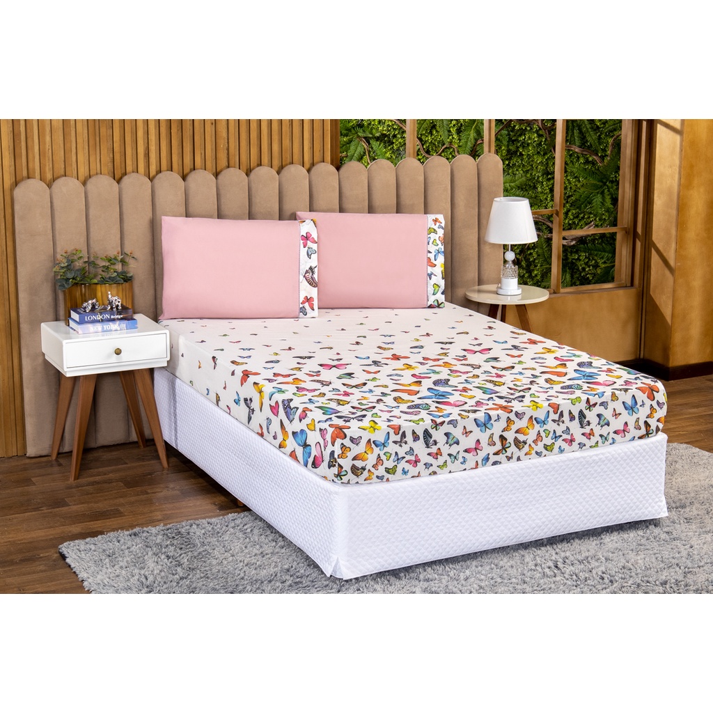 Jogo De lençol 100% Algodão Ponto Palito Estampado Casal Padrão 3 Peças - PROMOÇÃO