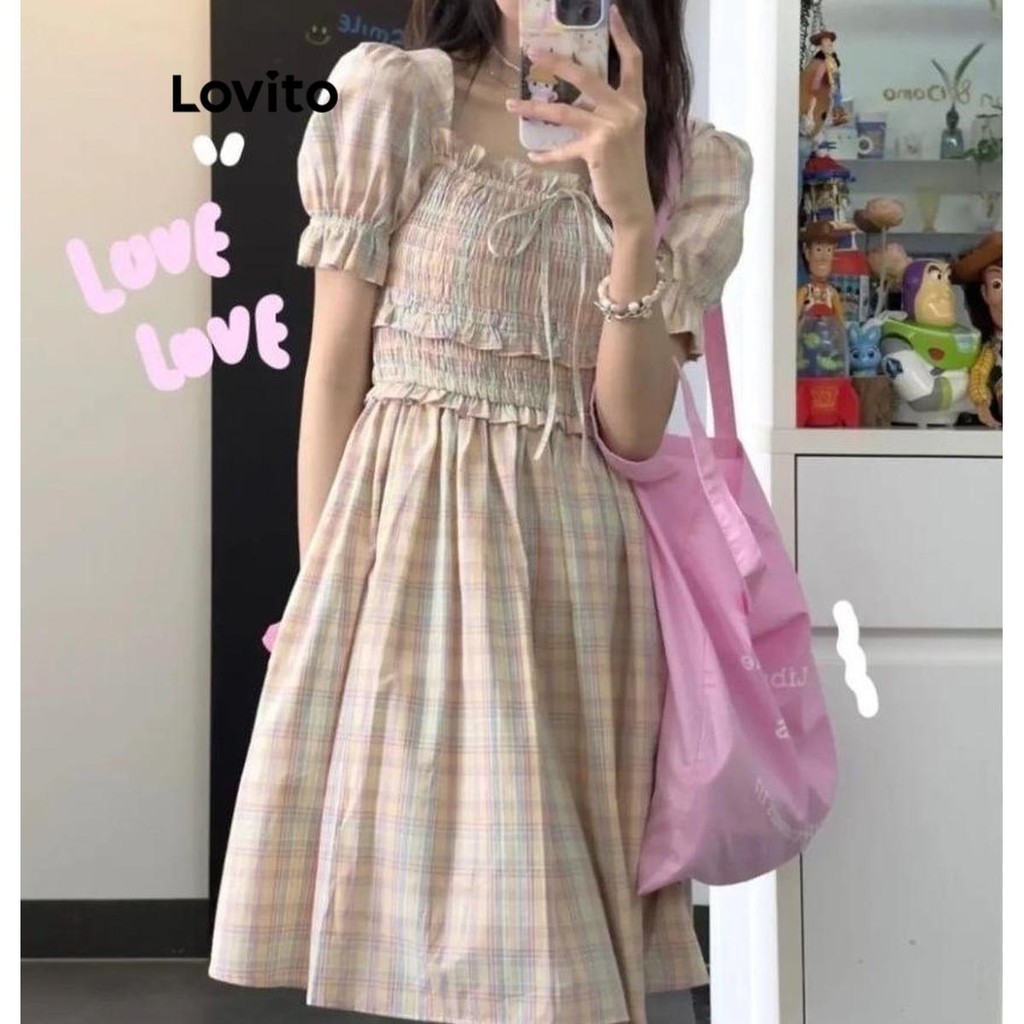 Lovito Vestido Casual Xadrez Com Bata Em Camadas Para Mulheres LNL40066
