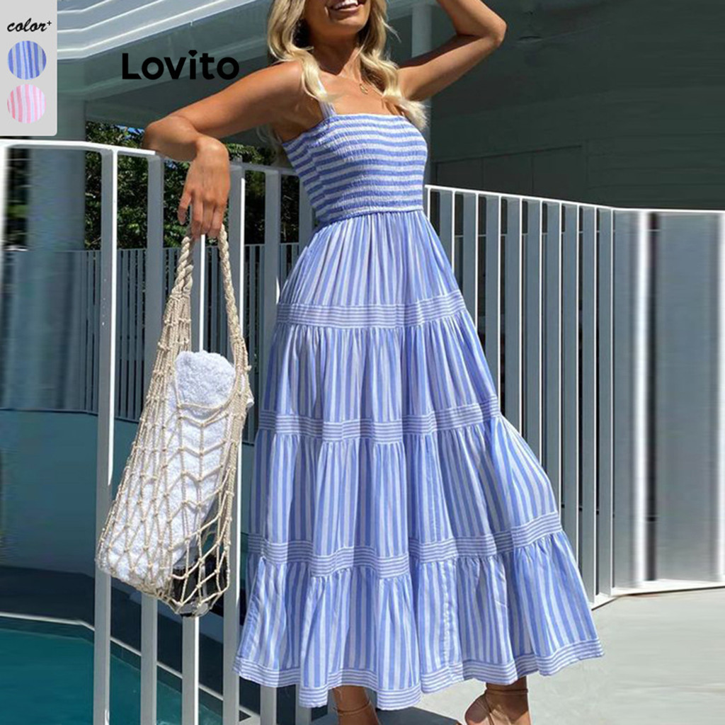 Lovito Vestido Casual Listrado Com Bata Em Camadas Para Mulheres LNL50088