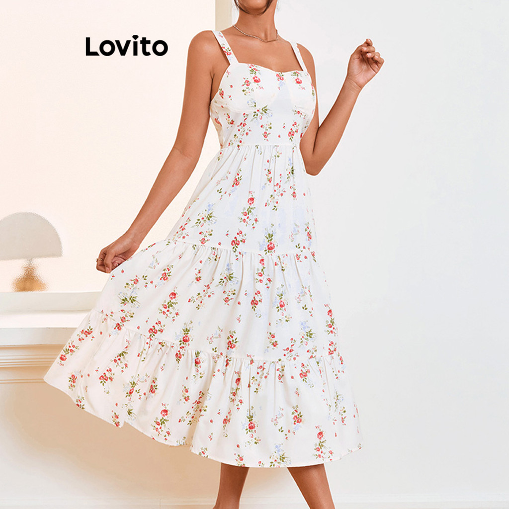 Lovito Vestido casual com estrutura floral e camadas em camadas para mulheres LBL14610