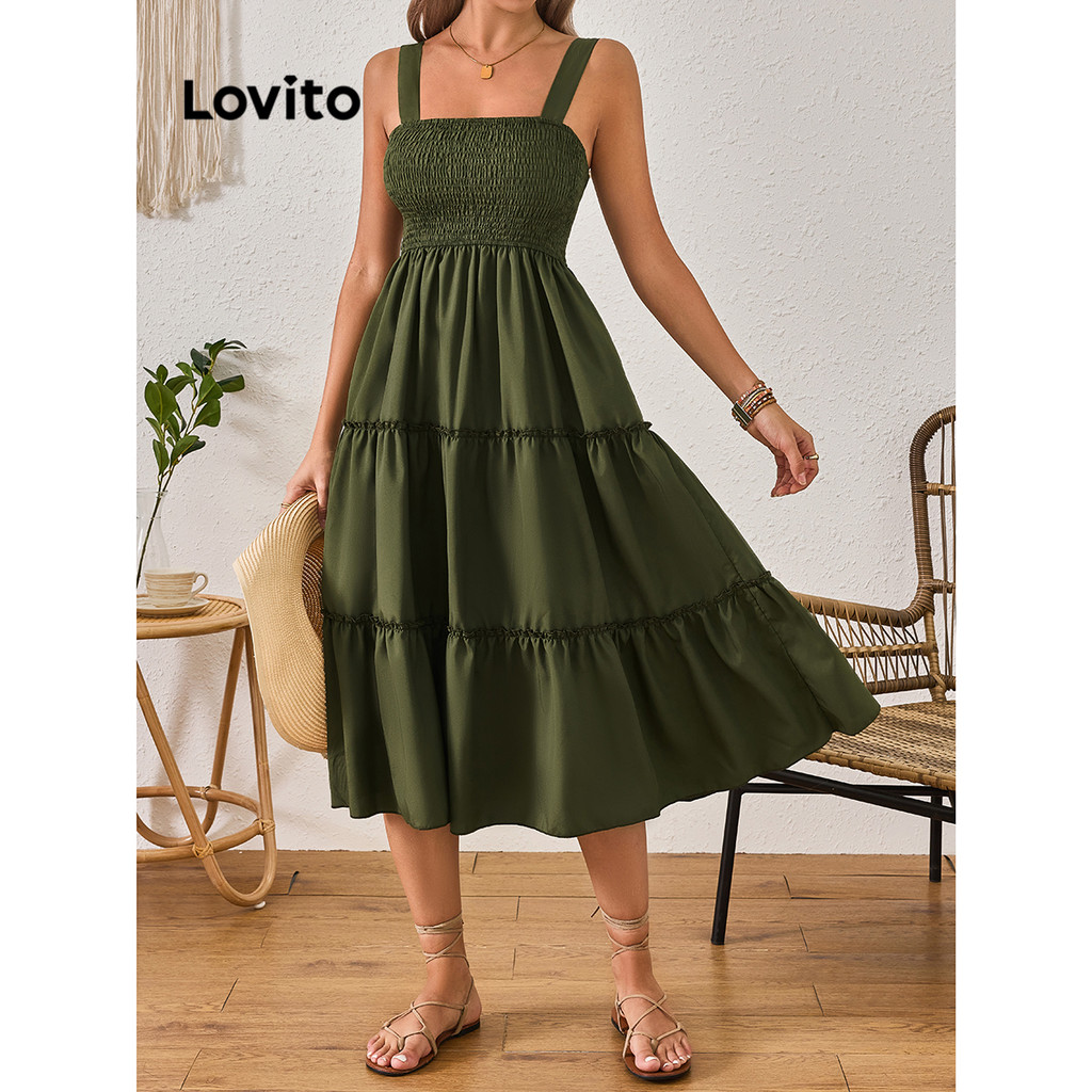 Lovito Vestido Casual Simples Com Bata Em Camadas Para Mulheres LBL07074
