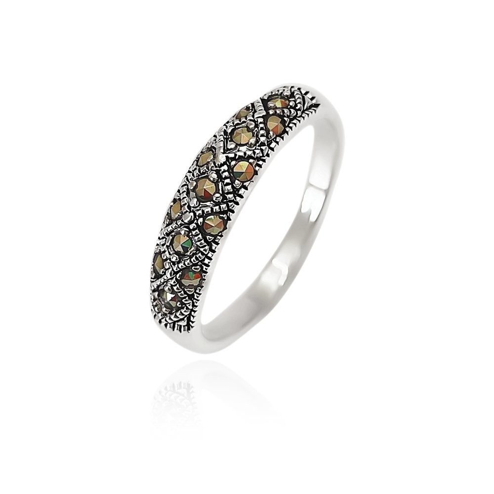Anel Meia Aliança com Marcassitas Prata 925