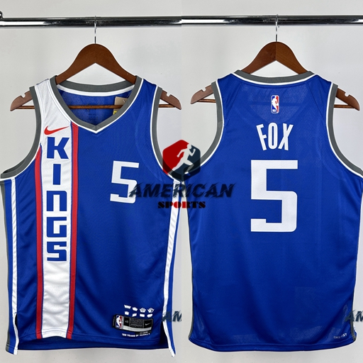 Masculino Camiseta 2023 regata NBA Sacramento Kings De'Aaron Fox Camisa Blue City Jogador De Basquetebol Jersey