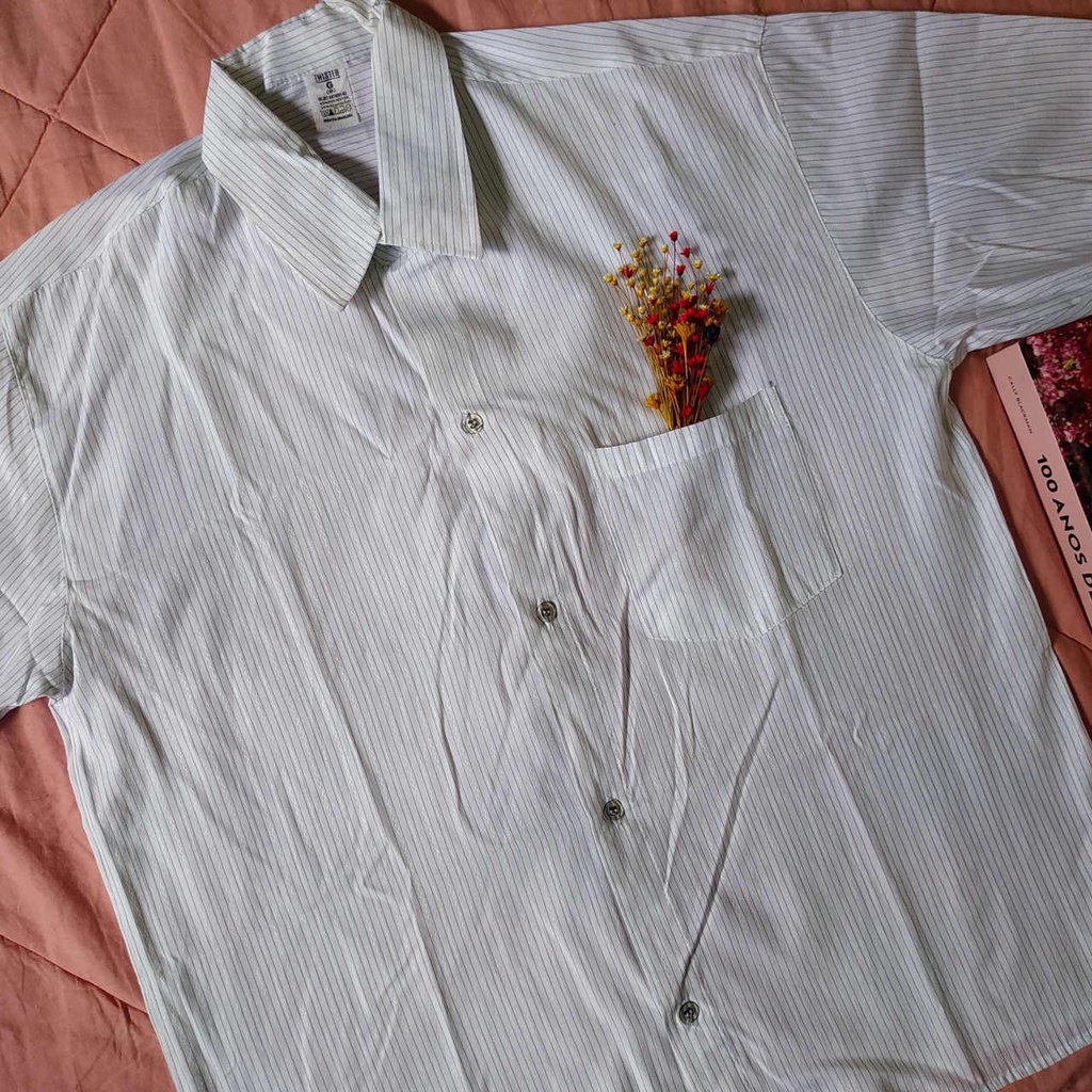 {BRECHÓ} Camisa Social Manga Curta Masculina Branca Listrada Tamanho G - Marca Twister