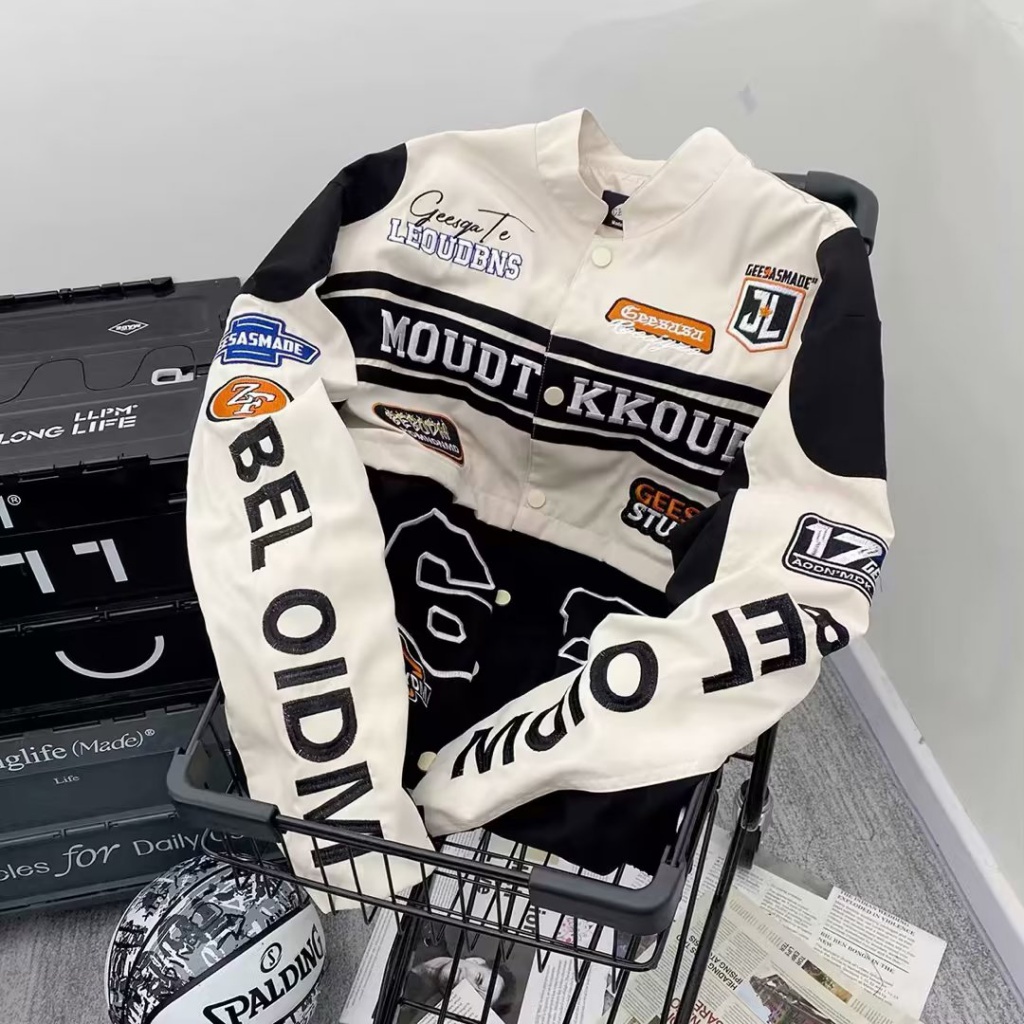 Jaqueta Americana Destacável De Motocicleta Vintage Hip Hop Loose Versátil Unissex Uniforme De Beisebol