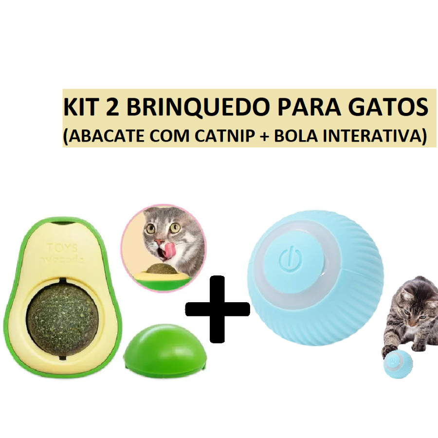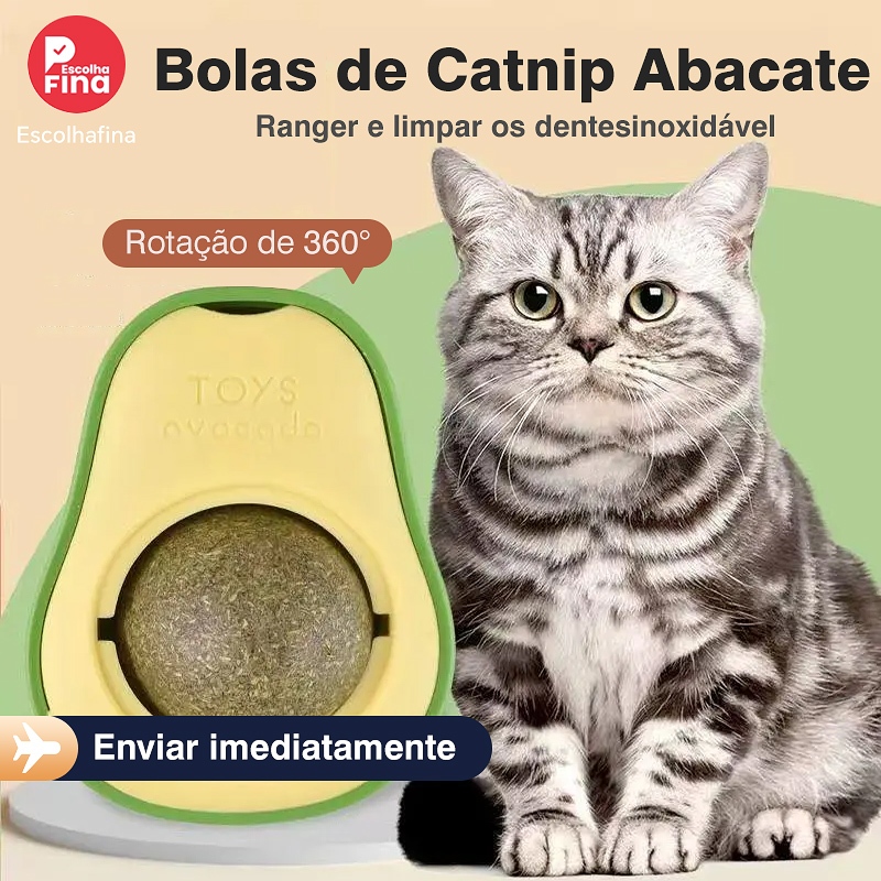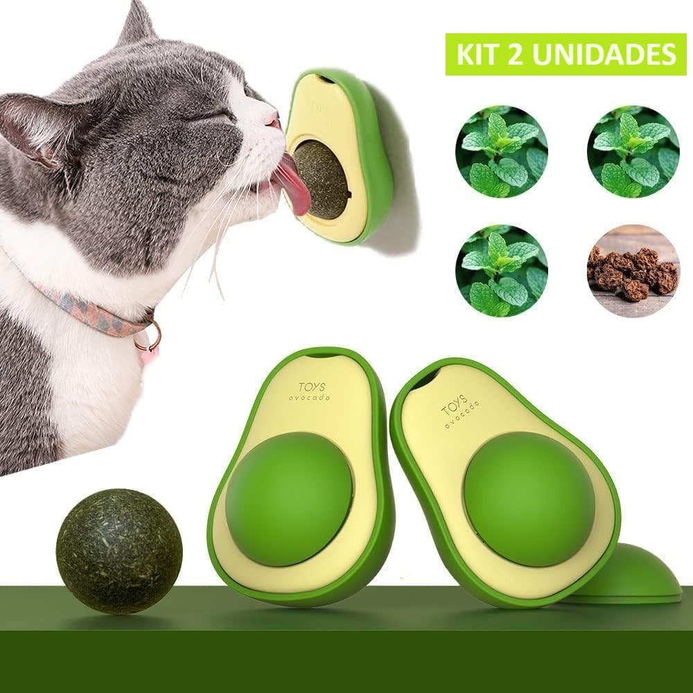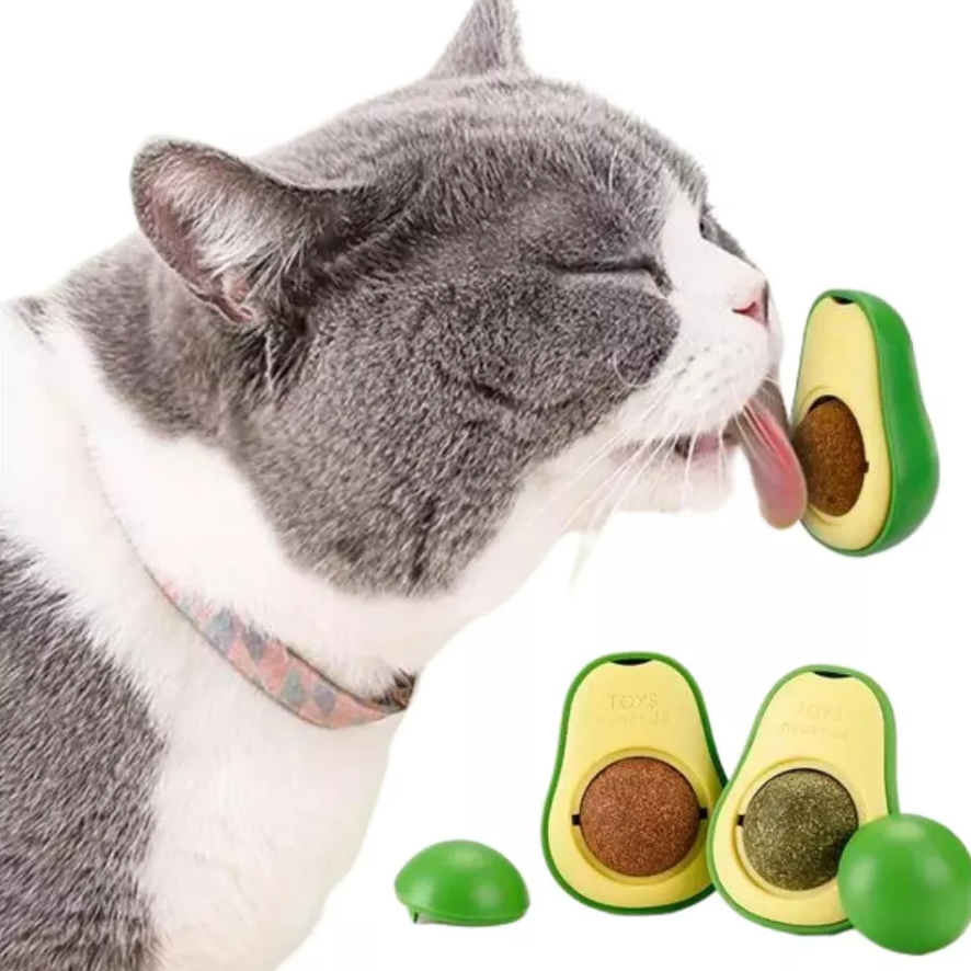 Kit Brinquedo Formato Abacate Com Catnip Erva Natural + Bolinha Giratória Interativa Para Gatos
