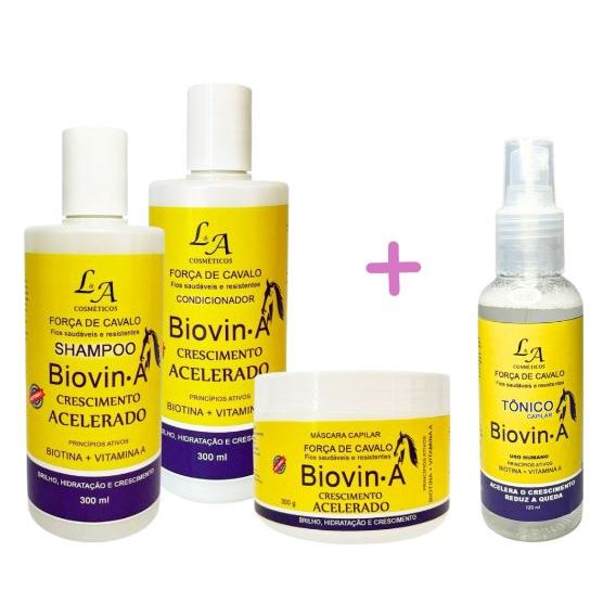 Kit Crescimento Capilar Completo Biovin-A Força de Cavalo + Tônico Crescimento e Creme p/ pentear LA