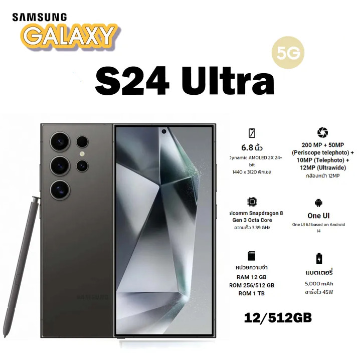Marca Nova Galaxy S24 Ultra 12GB RAM De Preço Mais Baixo | Smartphone 512GB 5G NFC , Snapdragon 8 Gen , 3 Octa Core , 6.8 " Tela AMOLED , 50MP , OIS Triple Camera , Celular Android 14.0