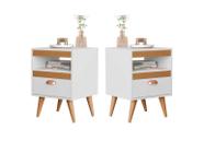 Kit Duas Mesas De Cabeceira Retrô Pés Palito Em Madeira Maciça 2 Gavetas E 1 Nicho - Verona - Off White Com Nature - Lojas GD