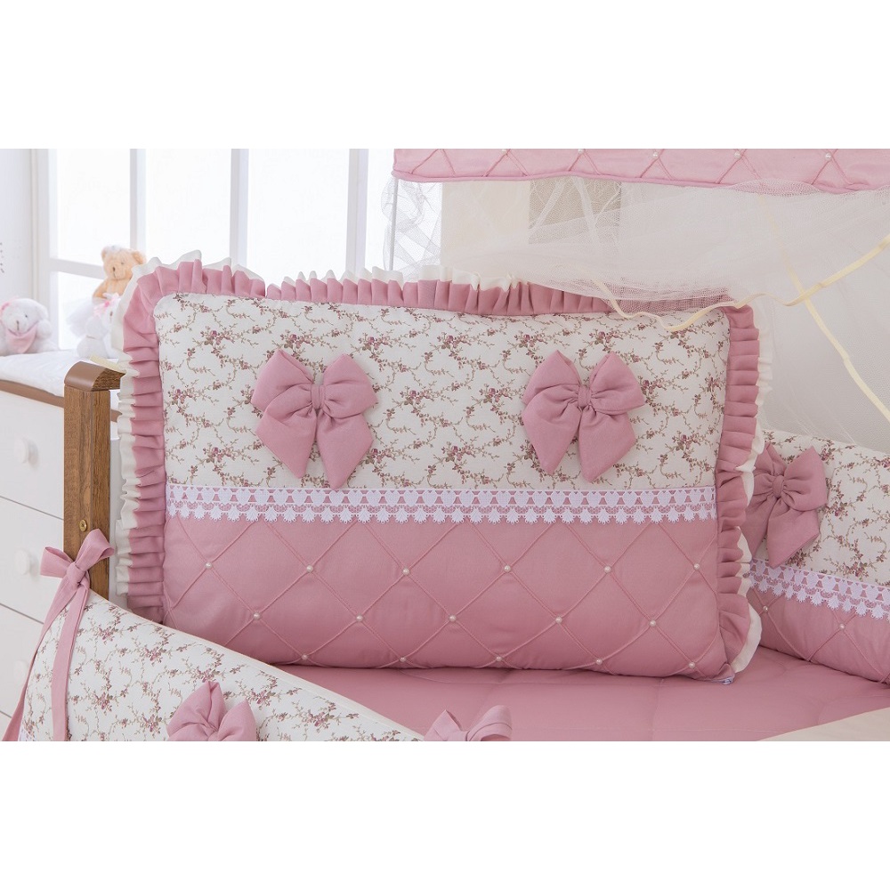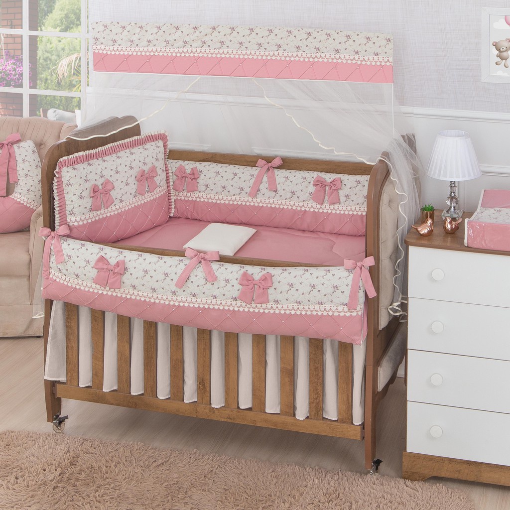 Kit Berço Para Menina Floral Rose Com Perolas Padrao Americano