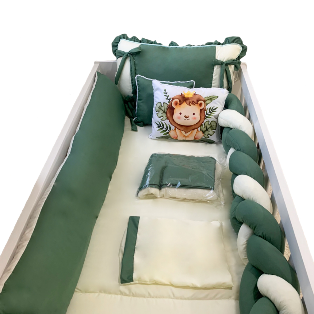 Kit Berço Trança Menino Completo Padrão Nacional E Americano 9 Peças Modelo Tranca Azul Verde Safari Bege Branco Neutro Nuvem Amor Protetor Lateral Berço para bebê Enxoval para berço - Promoção