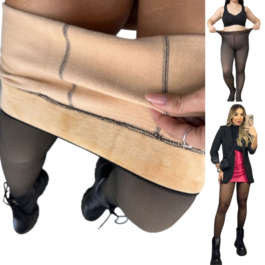 Meia-Calça Plus Size 3XL - Térmica Forrada Peluciada Translúcida De Lã Quente Feminina P/Inverno