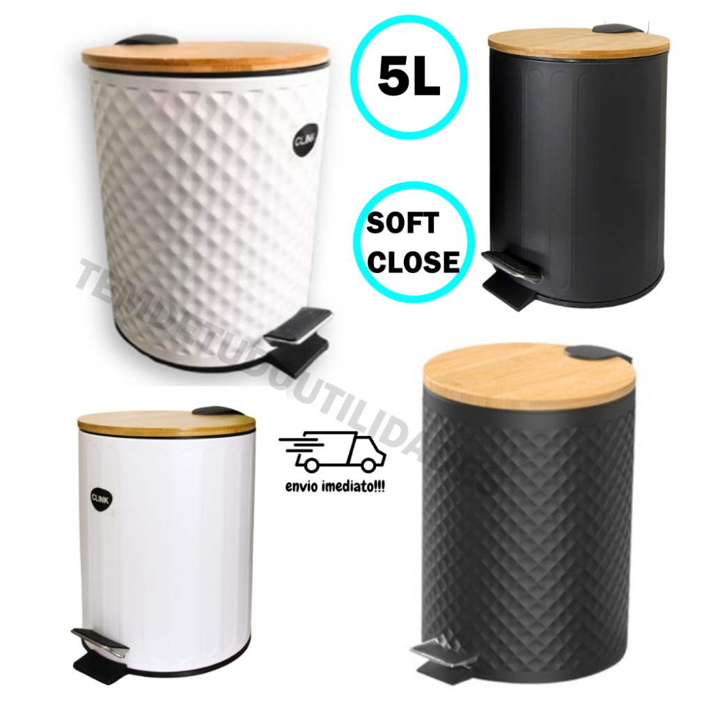 Lixeira Inox 5 Litros Com Tampa De Bambu Pedal e Cesto Removivel Clink