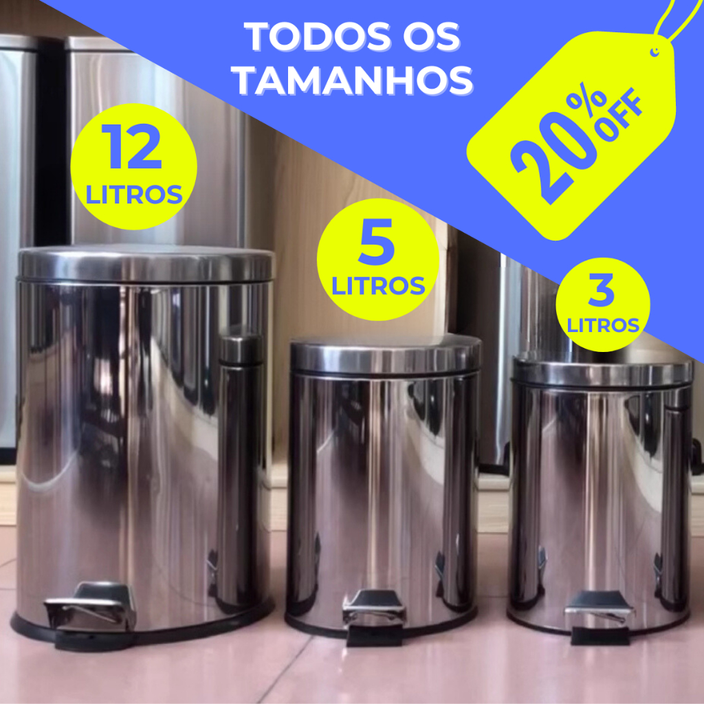 Lixeira Cesto de Lixo Aço Inox com Pedal Balde Interno e Tampa Redonda 3L 5L e 12 Litros Banheiro Escritório e Cozinha