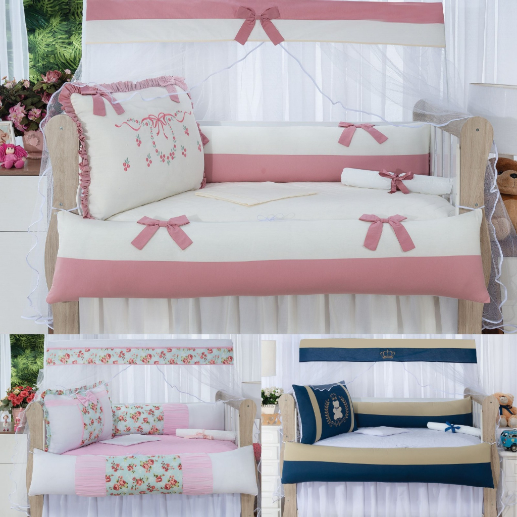 Kit berço americano 4peças protetor de berço varias estampas e modelos menino e menina 100% algodão enxoval completo brubrelel