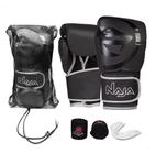 Kit Luva De Boxe E Muay Thai Naja Black Line + Bandagem + Protetor Bucal + Bolsa Bag