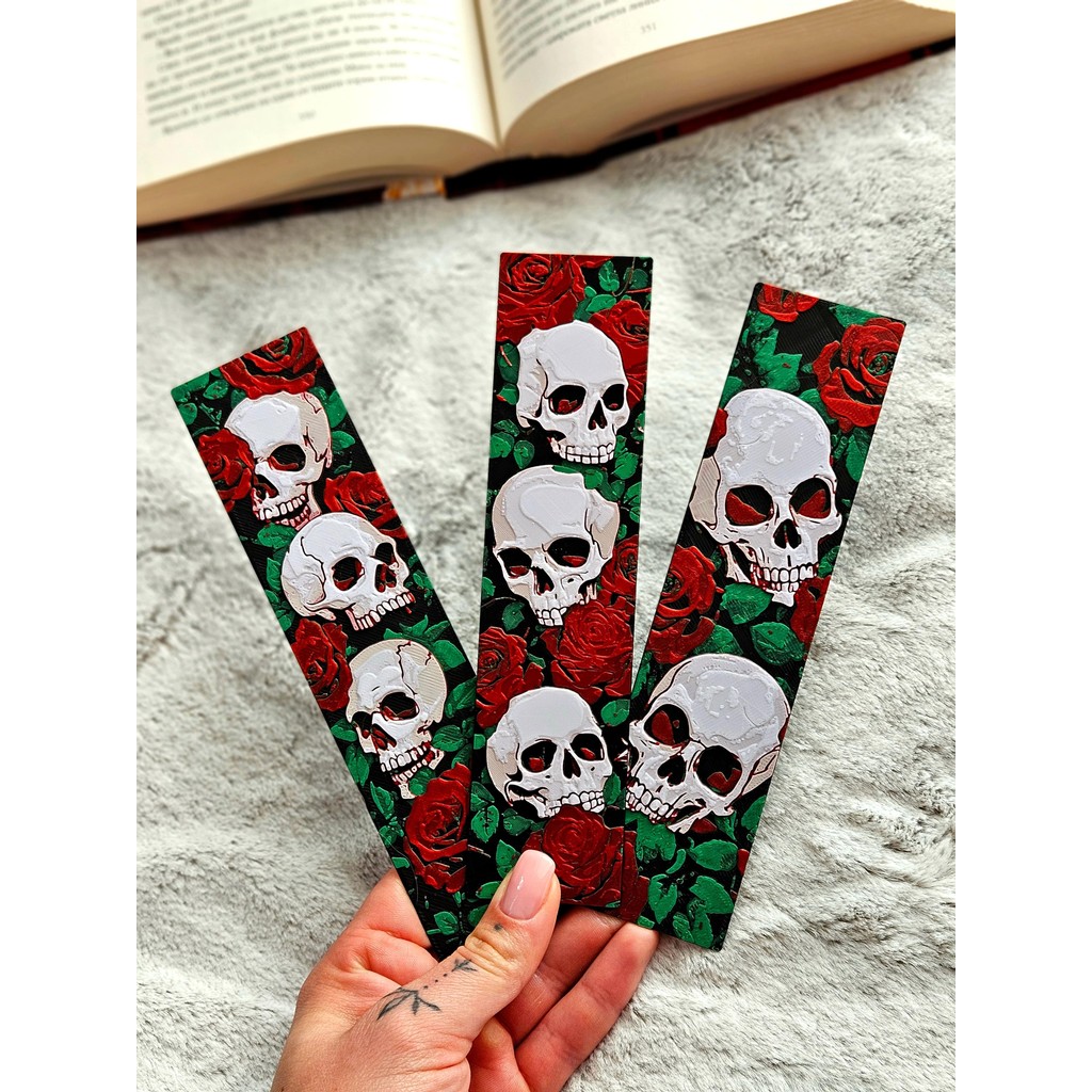 Marcador de Páginas - Caveira e Rosas | 3 Unidades | Para Amantes De Livros | Vieco 3D