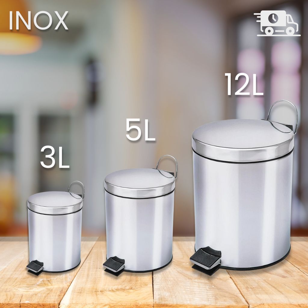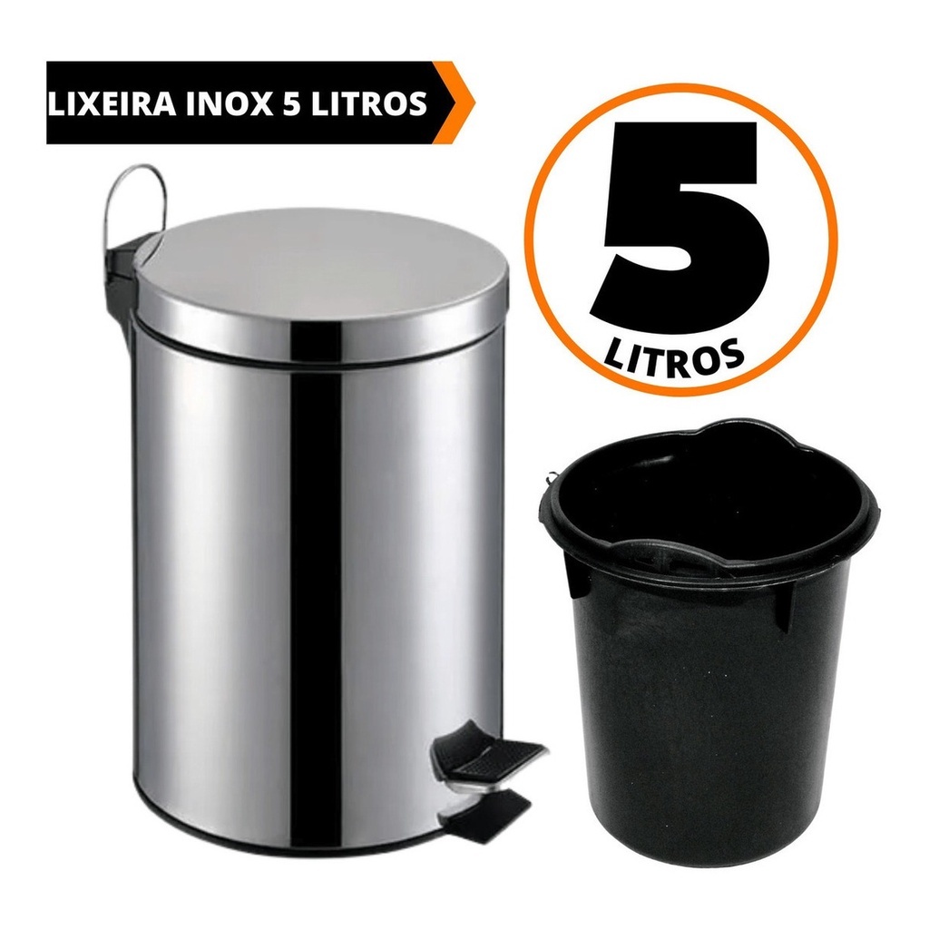 Lixeira Cesto de Lixo Aço Inox com Pedal Balde Interno e Tampa Redonda 3L 5L e 12 Litros Banheiro Escritório e Cozinha