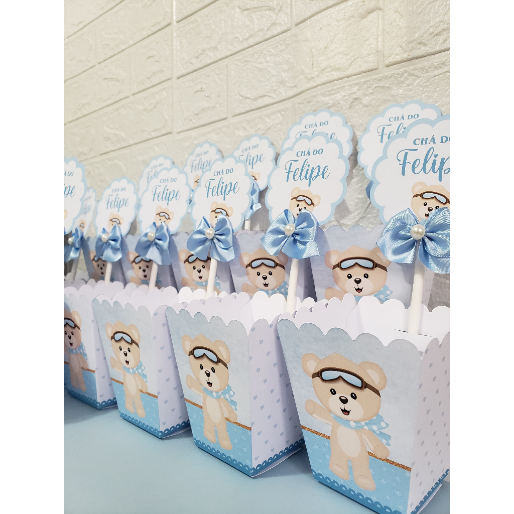Kit Centro de mesa personalizado chá de bebê menino - chá fraldas - tema Ursinho Baloeiro