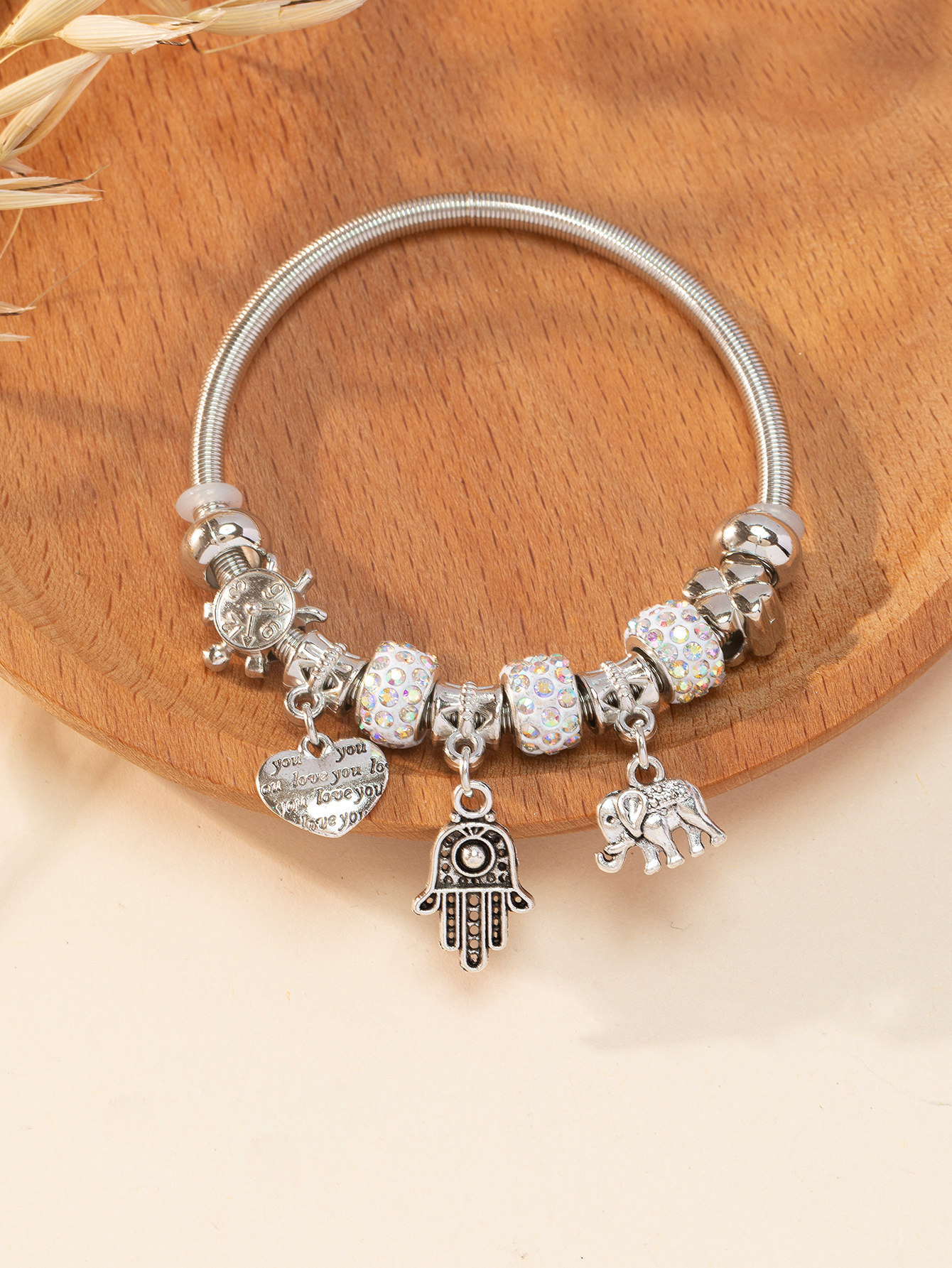 1pc Bola De strass & Relógio Trevo De Quatro Folhas Elefante Coração Amoroso hamsa Encanto De Mão De Aço Inoxidável Para Meninas/Mulheres Decoração Diária Valentines .