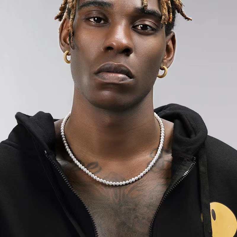 1pc masculino Retro único estilo Hip-Hop imitação de pérola colar artesanal frisado jóias